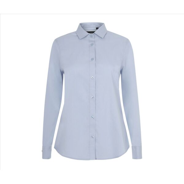 English placket front closure. Buttoned shirt Italian collar. Back yoke. English placket front closure. Buttoned shirt Italian collar. Back yoke. Spare buttons. Fitting back dart.
